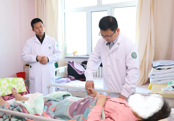义诊结束后,孙家行主任在我院相关科室负责人陪同下,来到康复科一病房开展查房。针对病情复杂的患者,孙家行主任现场进行专业检查,分析治疗难点,并与我院神经内、外科团队在治疗方案优化、并发症预防等方面展开讨论,分享了哈医大二院在卒中后偏瘫治疗方面的成熟经验。据了解,脊髓电刺激(SCS)等神经调控技术,是通过植入电极精准释放微电流,调节脊髓或大脑内异常的神经信号环路,从而有效缓解卒中后痉挛、改善运动控制,为药物和康复治疗效果不佳的偏瘫患者提供了重要的补充治疗选择。