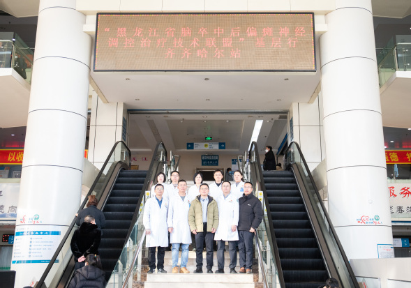 为推动我院神经疾病诊疗能力进一步提升,让先进诊疗技术惠及更多百姓,12月11日,“黑龙江省脑卒中后偏瘫神经调控治疗技术联盟”基层行(齐齐哈尔站)活动在我院正式启动。作为“黑龙江省脑卒中后偏瘫神经调控治疗技术联盟”基层行活动的重要一站,本次特邀哈医大二院神经外科孙家行主任莅临我院,针对卒中后肢体偏瘫患者开展以神经调控治疗技术为核心的义诊活动与指导,旨在推动神经调控治疗技术的规范化应用与普及,让更多患者受益。我院副院长刘忠锦及神经内、外科相关科室负责人全程参与并陪同。