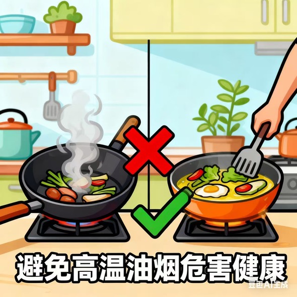 控制油温很重要。很多人都习惯等油冒烟了再放菜,但实际上油冒烟时的温度可能已经超过了油的烟点,此时油脂会氧化分解,产生大量油烟和其它有害物质,对呼吸系统造成伤害。正确的做法是油下锅后,油温升到五六成热时就可以放入食材了。