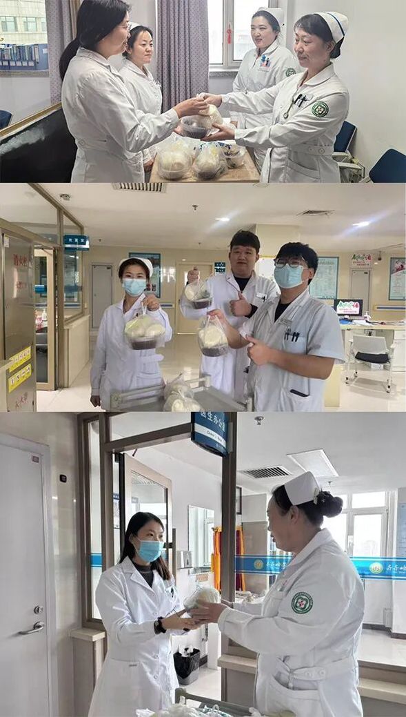 各党支部将腊八粥送到内科科室值班人员手中