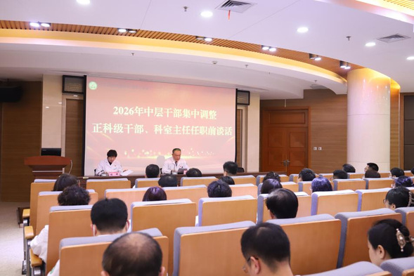 为进一步加强医院干部队伍建设,推动新任职干部统一思想、凝聚共识,以良好状态投身医院高质量发展新征程,2月14日,我院在住院综合楼三楼第一会议室召开2026年中层干部集中调整正科级干部、科室主任任职集体谈话会议。医院领导班子成员出席会议,全体新任职正科级干部、临床门诊医技科室主任及相关职能科室工作人员参加会议。党委副书记张娜主持会议。