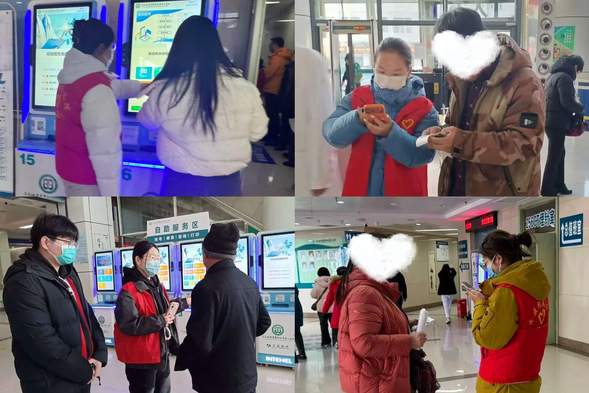 团员志愿者指导患者操作自助机