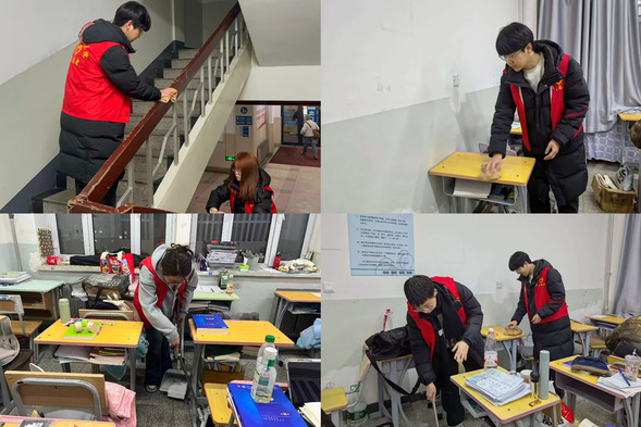 在学生公寓区域,志愿者们聚焦自习室、楼梯间等公共区域,开展志愿清扫活动。大家分工明确、协作默契,手持扫帚、抹布等工具,认真清理地面垃圾、擦拭扶手灰尘、整理自习室桌椅,不放过任何卫生死角,用汗水改善学生居住和学习环境,营造了干净、整洁、有序的公寓氛围,让雷锋精神融入校园生活的每一个细节。