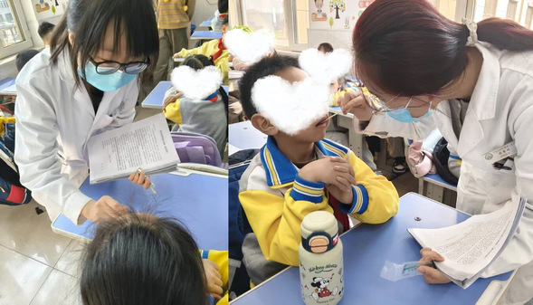讲座结束后,义诊服务有序开展。医生为每位孩子进行细致全面的口腔检查,逐一记录牙齿发育、龋齿、牙周状况等信息,现场给出个性化护牙建议,并将检查结果反馈给老师与家长,助力早发现、早干预、早治疗。