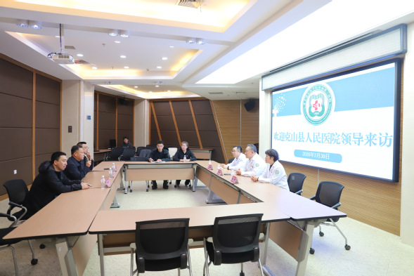 3月30日下午,克山县第一人民医院院长祖双一行3人莅临我院交流访问。我院党委书记孙茂林、党委副书记张娜、副院长刘忠锦及相关科室负责人陪同接待,并在住院综合楼三楼第四会议室举行交流座谈会。