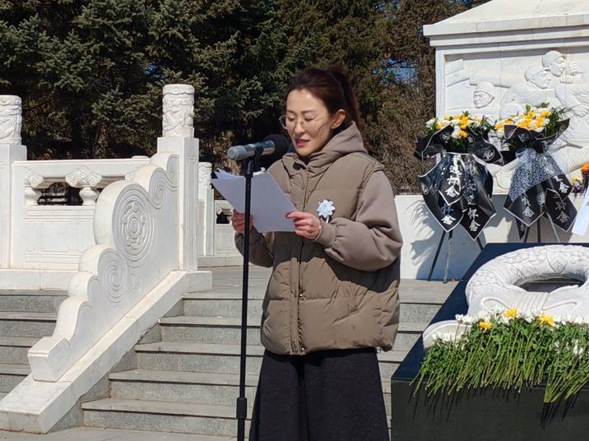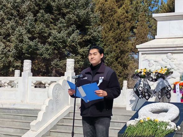 团委书记王晓巍讲话。她表示,本次祭扫活动,不是简单的追思仪式,更是一次深刻的思想教育、一次坚定的初心淬炼。她希望大家牢记嘱托、不负韶华、勇担使命。一要铭记革命历史,传承红色基因,筑牢青春信仰。要以此次祭扫为契机,主动学习红色历史、传承红色精神,把对先烈的缅怀之情,转化为铭记历史、感恩当下的自觉行动,转化为坚定理想、奋勇前行的强大动力。二要立足学医初心,牢记使命担当,精进专业本领。要始终保持敬畏之心,敬畏生命、敬畏医学、敬畏职责,把“精益求精”作为追求,把“救死扶伤”作为信念,努力成长为医德高尚、医术精湛的新时代医者,用专业本领守护人民群众的生命健康。三要转化缅怀之情,凝聚奋进力量,书写青春华章。要把个人的青春理想,融入国家发展和医疗卫生事业大局,以更加昂扬的姿态、更加务实的作风,努力成长为可堪大用、能担重任的医学人才,为推进健康中国建设、守护人民生命健康、实现民族复兴的中国梦贡献青春力量。