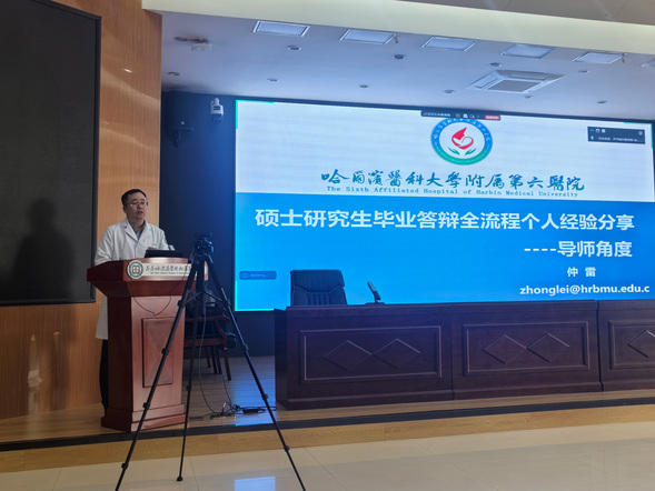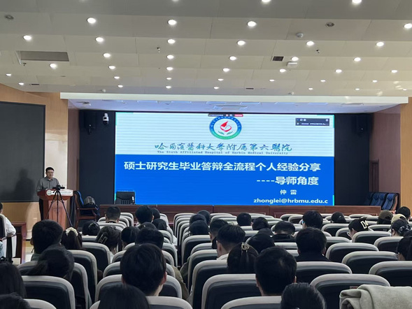为规范硕士研究生毕业答辩流程,帮助研究生明晰答辩要点、提升答辩能力,保障培养质量,4月9日,我院邀请哈尔滨医科大学附属第六医院仲雷教授,开展“硕士研究生毕业答辩全流程个人经验分享”专题培训,本次培训由教学主管院长刘忠锦院长主持。我院研究生导师及2023级、2024级、2025级硕士研究生共计200余人参会,共同聆听分享、交流心得。
