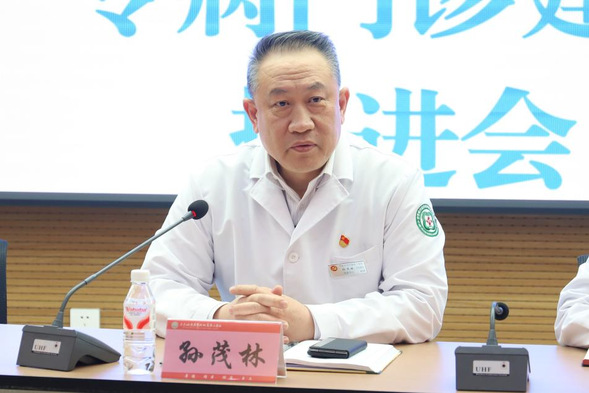 我院党委书记孙茂林讲话。他代表医院对学院领导和上海汇帆阁公司一行的到来表示热烈欢迎,并简要介绍了医院发展历程及学科建设总体情况。他表示,专病门诊建设是聚焦专科诊疗、整合多学科资源、提升患者就医获得感的“关键一招”,也是推动医院内涵提升的重要突破口。近年来,我院紧紧围绕学院党委决策部署,持续优化门诊服务流程,在高血压、糖尿病、慢阻肺等慢性病管理领域进行探索,初步形成了“以病种为中心、以患者为导向”的服务模式。同时,他指出,当前我院专病门诊建设仍存在标准化程度不高、多学科协作机制不畅、全周期管理体系不完善等短板,期待以此次推进会为契机,为专病门诊建设注入新思路、新动能,真正实现“建一个专病门诊,树一个学科品牌,惠一方百姓健康”的目标。