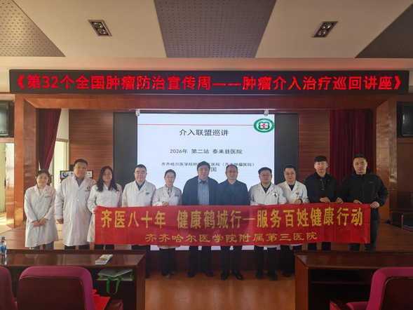 为庆祝学院建校80周年,迎接医院建院100周年,深入推进优质医疗资源下沉,助力基层医疗服务能力提升,在“第32个全国肿瘤防治宣传周”之际,4月21日,我院由副院长杨钰带队,医疗合作办公室、医疗服务中心牵头,组织介入、呼吸、肿瘤、影像等领域专家团队,前往泰来县人民医院,举行医联体建设签约仪式暨“第32个全国肿瘤防治宣传周”肿瘤介入治疗巡回讲座,以实际行动践行“齐医八十年 健康鹤城行”使命担当。