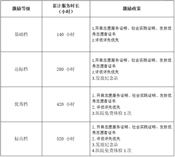 4、累计达到一定志愿服务时长,可享医院相应激励政策(具体激励政策附后。)